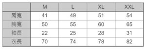 | 肩寬 | 41 | 49 | 51 | 54 |